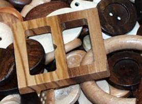 Elementi in legno di vario tipo: bottoni, alamari, stanghette, palline, accessori...